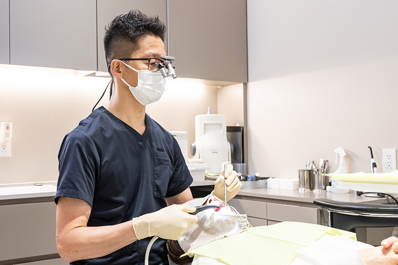 また、歯や歯ぐきはとても小さく、その治療はとても繊細に行われる必要があります。当院では、ルーペやマイクロスコープを用いた拡大視野、ラバーダム防湿や繊細な器具を用いた精密な治療を行っております。