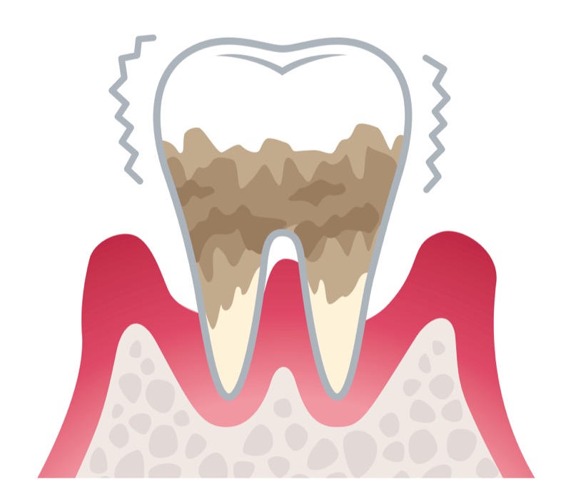 歯ぐきの近くにに生息する細菌によって歯肉に炎症が起こり、歯を支える骨が溶けてしまう病気です。最終的には歯を失う原因になることもあります。